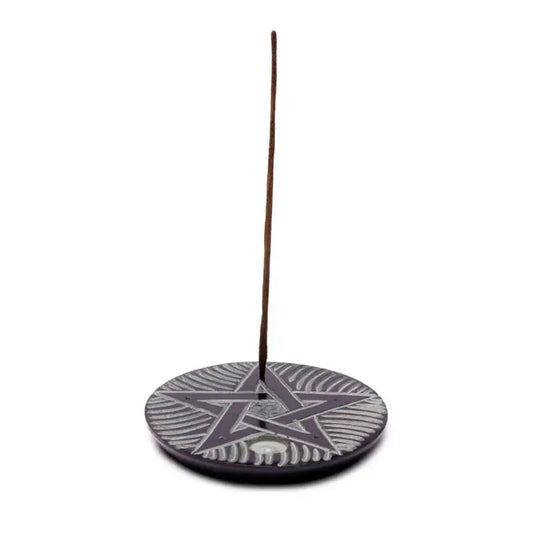 Räucherstäbchenhalter für mehrere Stäbchen und Kegel - Speckstein - Pentagramm
