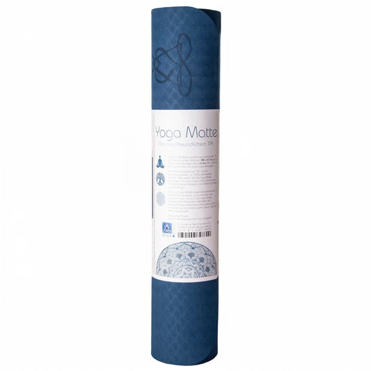 EcoBalance Yogamatte TPE – 6 mm | ultraleicht | Blume des Lebens | dunkel-/hellblau | inkl. Tragegurt