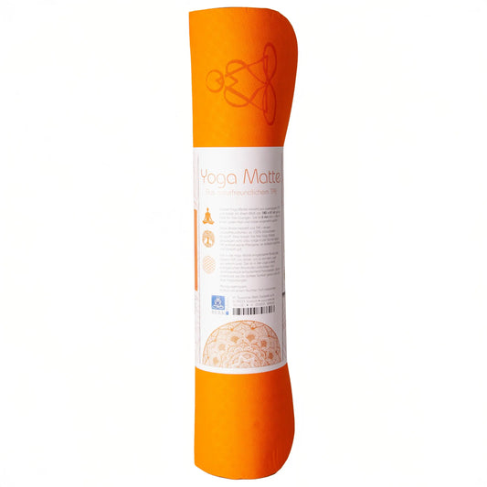 EcoBalance Yogamatte TPE – 6 mm | ultraleicht | Blume des Lebens | orange/grau | inkl. Tragegurt